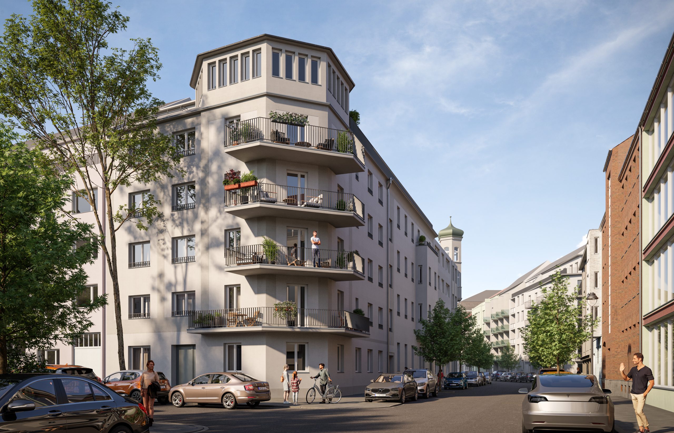 Somit entsteht ein prominentes Objekt in bester Lage mit einem interessanten Wohnungsmix für Singles und Paare, für Familien und Menschen, die zuhause Platz für ein Büro benötigen.